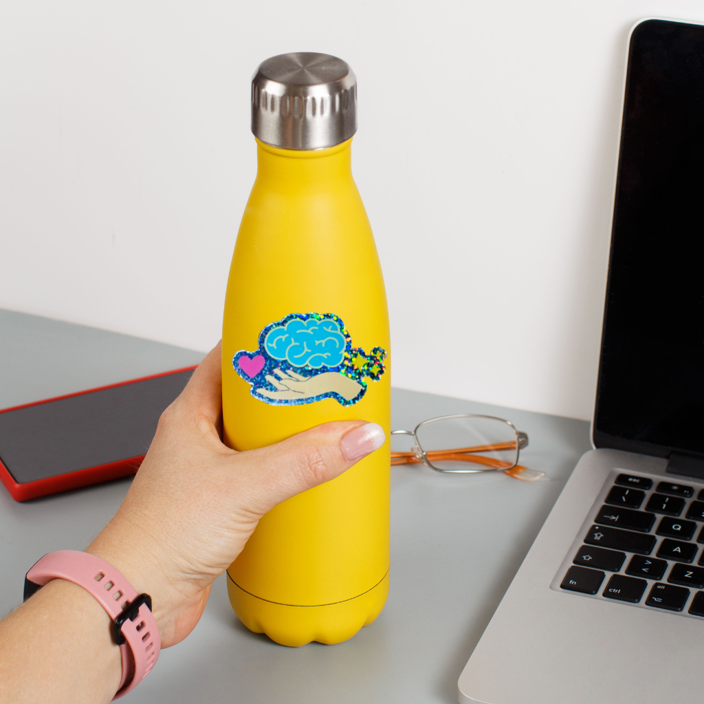 Stickers de Logo con brillo: Lleva nuestra marca a todos lados. Perfectos para personalizar tus pertenencias o como regalo para tus amigos y familiares y recordar cuidar tu BienEstar.